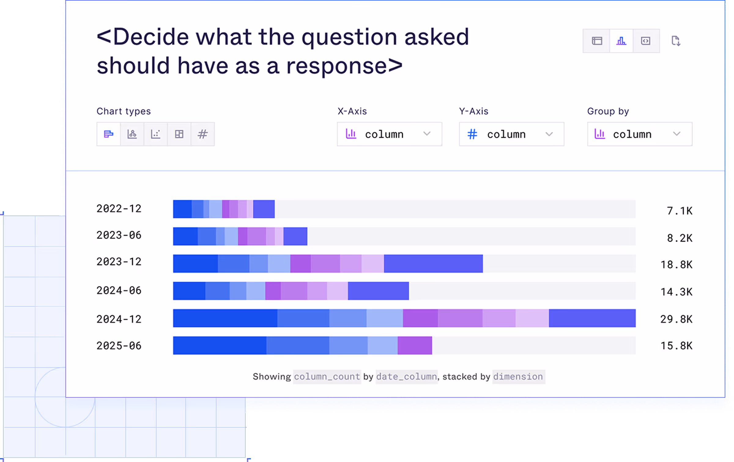 Conversational analytics offers the simplicity of dashboards with the flexibility of a feed. Users can ask questions in natural language and get accurate, visually rich answers in seconds.